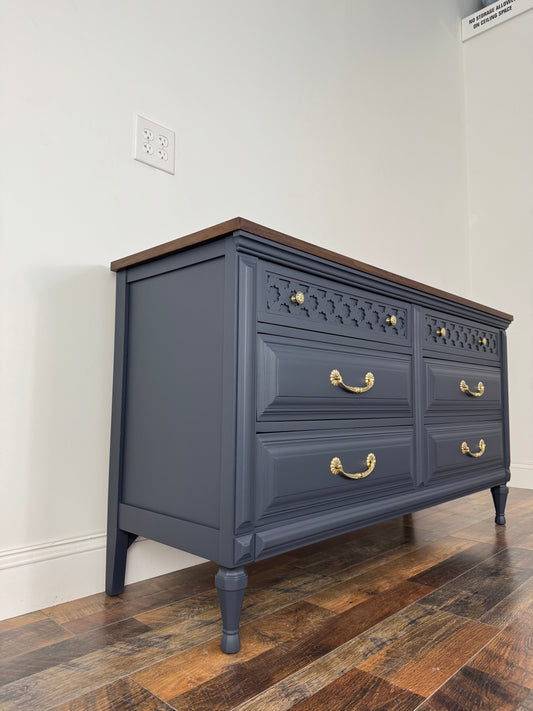 Vintage Kent Coffey Navy Blue Dresser with Walnut Top