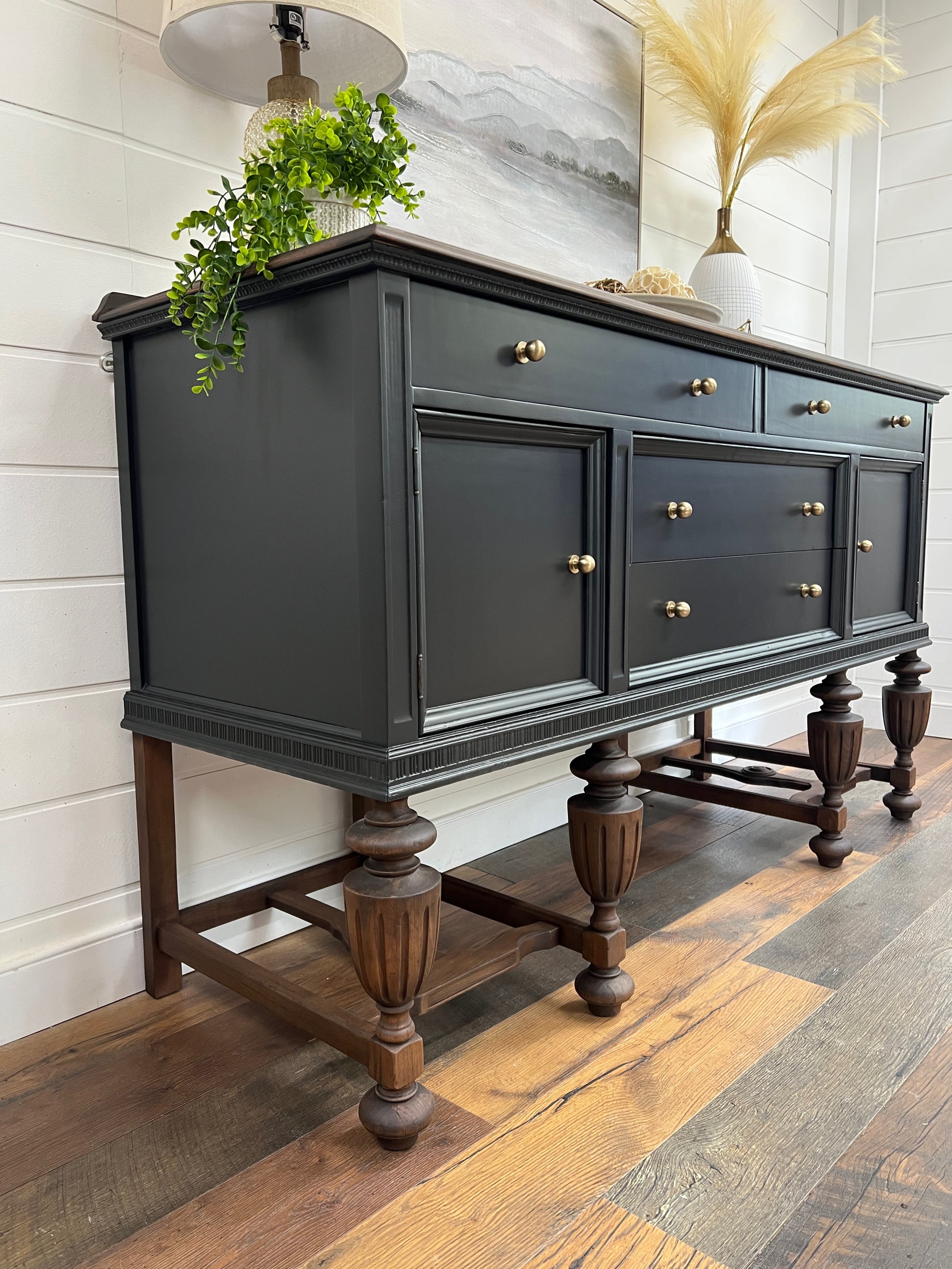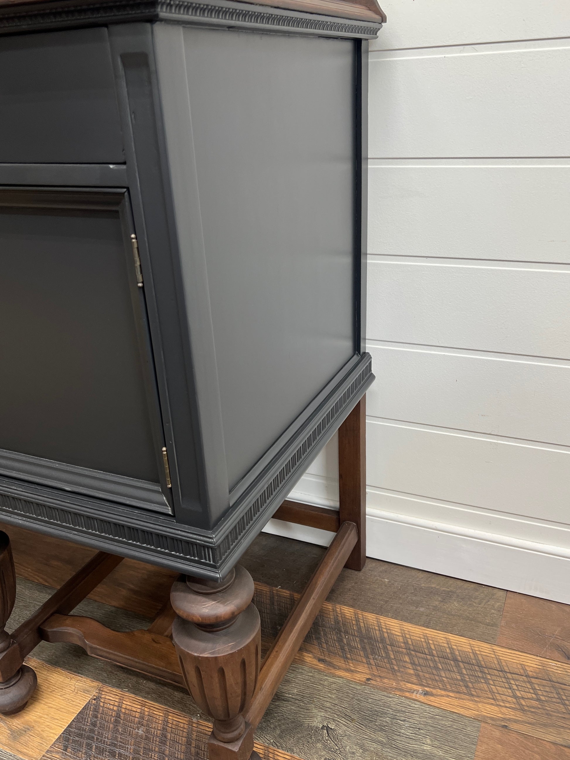 Item has very large drawers and cubbies. This piece could store a ton of clutter away and look amazing at the same time. This item is 100+ years old but it is excellent working condition. It is as solid as it looks.