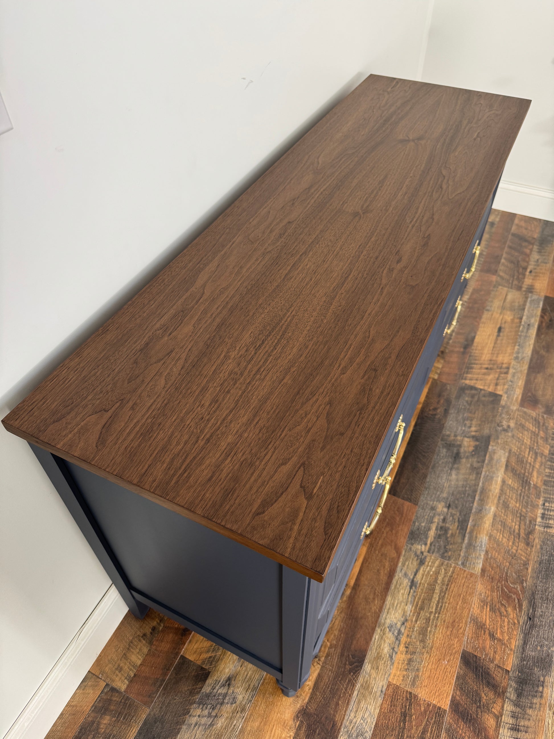 Vintage Kent Coffey Navy Blue Dresser with Walnut Top